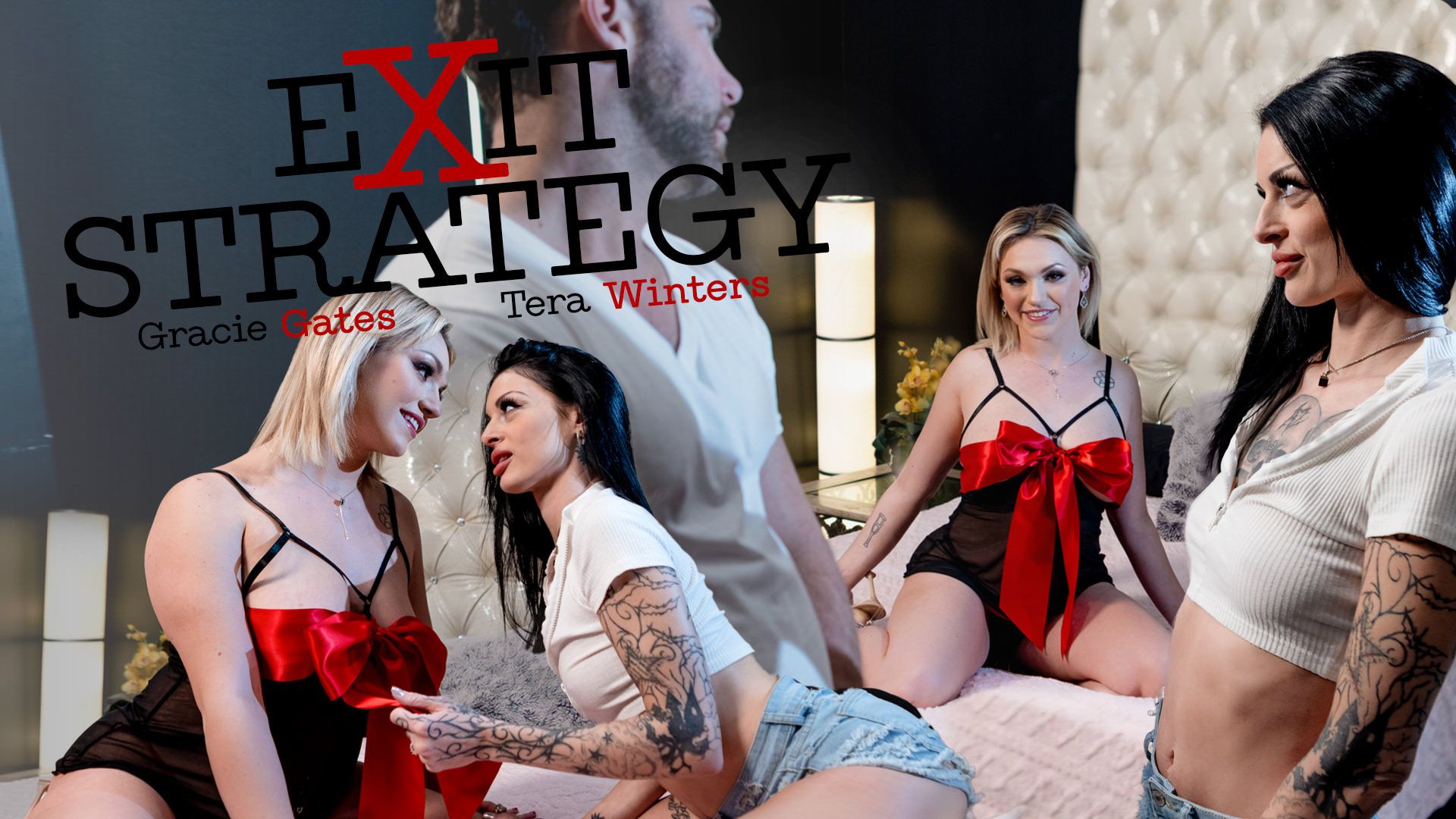 When Ned arrives at Honey's place, he eagerly kisses her, but she says she has a surprise for him. Honey then reveals that another woman, Evelyn (Gracie Gates), is waiting in the bedroom for them! Ned says he was hoping tonight would be for just the two of them, but Honey says it would be fun to have a threesome. But Ned isn't in the mood, and leaves. Honey shrugs it off, and the two women have steamy sex without him!